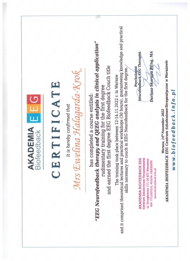 Do Eweliny trafiłam pod koniec lutego z depresją.Byłam w fatalnym stanie.Mam ogromne szczęście, że właśnie do niej trafiłam.Ewelina jest osobą,która wzbudza zaufanie,bije z niej ogromne ciepło i szczerość.Jest terapeutą, który cierpliwie i z emaptią słucha,wykazuje duże zrozumienie i nigdy nie ocenia.Im dłużej z nią pracujesz,tym coraz bardziej dostrzegasz jej oryginalność i prawdziwość.Praca jest jej pasją,a nie przysłowiowym "odbębnieniem" pacjenta.Dzięki niej nauczyłam się cieszyć każdą chwilą; uwierzyłam w siebie;mam inne spojrzenie na życie; potrafię radzić sobie z emocjami oraz problemami; zaczynam "kochać siebie"; zaczynam podejmować coraz więcej świadomych decyzji.Tutaj kieruję słowo do innych pacjentów: jeśli czujecie,że macie problemy,nie radzicie sobie z emocjami,jest Wam bardzo źle,macie poczucie beznadziei-dajcie sobie tę jedną szansę i umówcie się na spotkanie z Eweliną.Ja dałam sobie tę szansę i dzięki temu wciąż tutaj jestem i wszystko wygląda dużo lepiej.